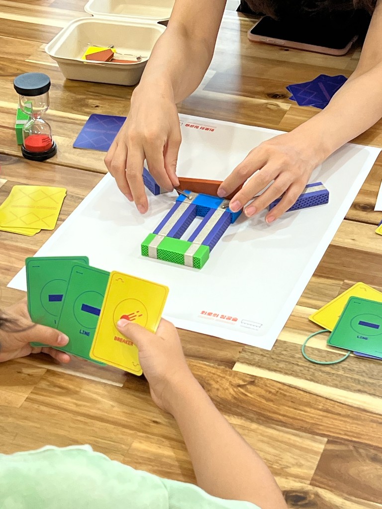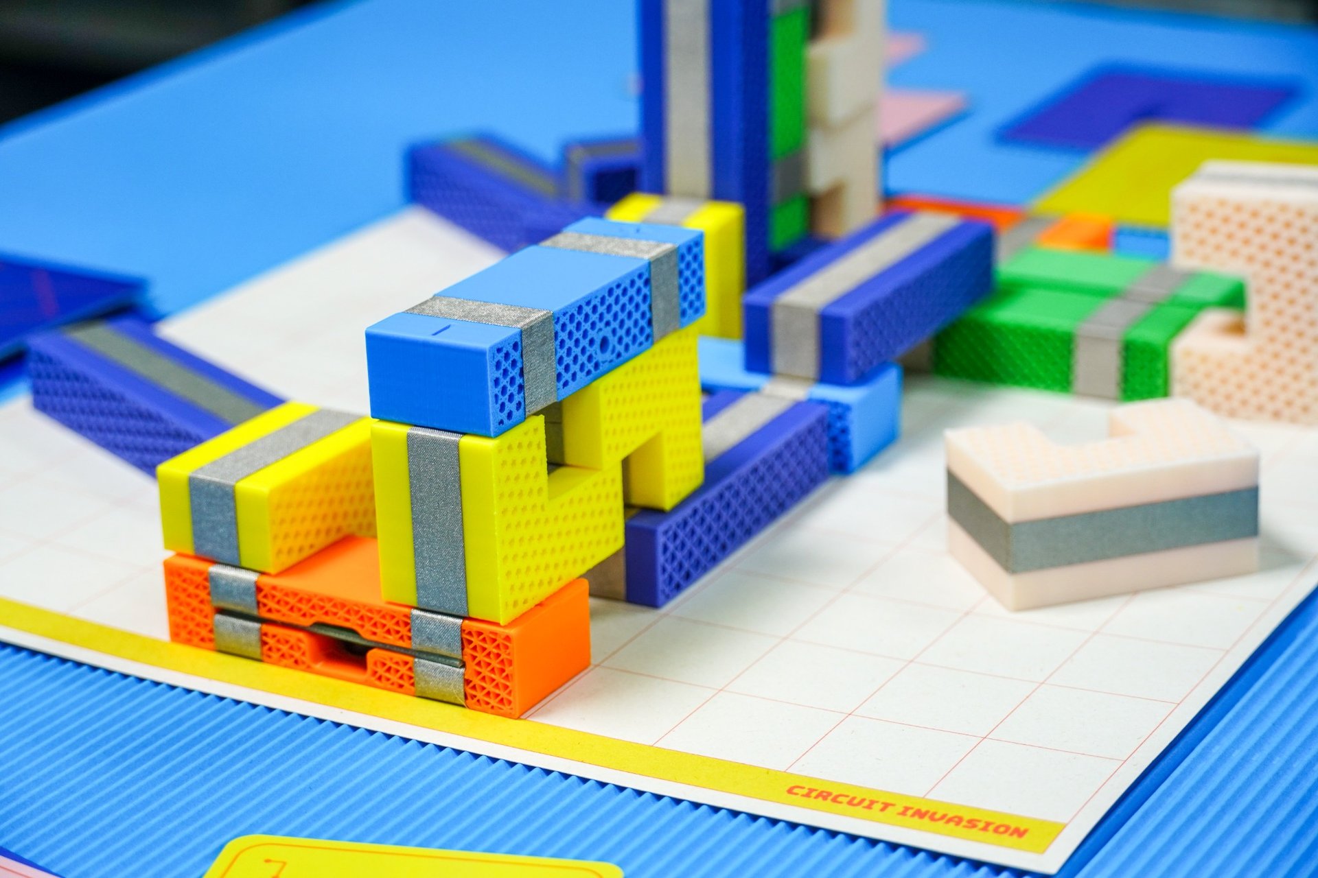 블럭을 쌓아 3차원의 전기 회로를 만들고 1:1 승부를 겨루는 보드게임을 진행합니다.